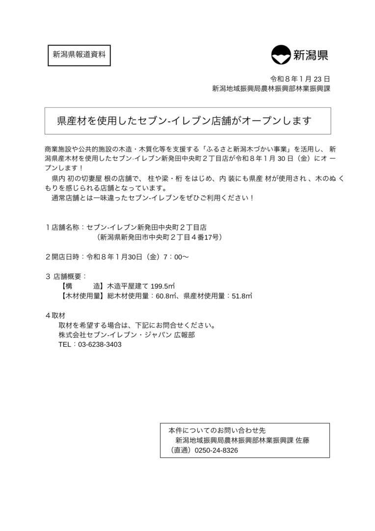 新潟県産材使用のセブンイレブン様